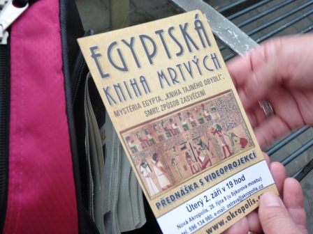 Jako vesničan ve městě zírám na všechny ty poblikávající tabule, mizící a znovu se zjevující nápisy, ucho přivyká rozhlasovému huhlání, oznamujícímu příjezdy a odjezdy mašin na všechny světové strany. V dálce zahlédnu ráznou chůzi paní kolegyně. Po napůl spolknutém pozdravení se ihned valí do blízkého Informačního centra, skýtajícího informace o naší věhlasné Ostravě, aby naplnila před odjezdem batoh letáky a propagačními materiály všeho druhu. Všímám si, že sotva zde kolegyně vstoupí, police plné letáků se začínají povážlivě třást před jejím nájezdem (je nadmíru jasné, že nájezdy se odehrávají často). Když už musím být svědkem tohoto "plenění" , nesměle sahám také po jednom zajímavém listu. Egyptská kniha mrtvých...stojí na něm. Se zájmem si barevný prospekt prohlížím, když periferním viděním zahlédnu vražedný pohled paní kolegyně, která tento jediný letáček nemá ve své sbírce. Z očí jí metají blesky, z nozder se valí ohnivé obláčky, tělo mobilizuje do útočného výpadu. Netoužím po fyzické inzultaci (ty slovní mi po celou dobu vejletu bohatě stačí), proto se nerada, ale v rámci zachování mírového stavu, vzdávám svých egyptských mrtvol a podávám kolegyni prospektík, k čemuž přidávám rádoby milý úsměv.
