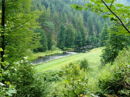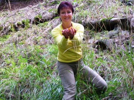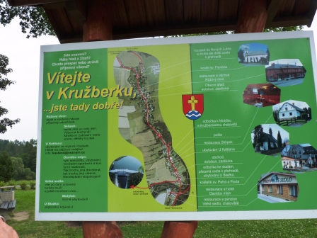 Po turistické značce vyrážíme na tříkilometrovou procházku do obce Kružberk. Cesta vede lesem. Kocháme se divokou přírodou údolí Moravice a semo tamo nepohrdneme lesní nabídkou houbových fešáků. Absolvuji horolezecké výstupy pro kozáky a křemenáče, zatímco paní kolegyně jimi plní svou objemnou tašku. Heslo cesty: Dnes žádné kraviny a pěkně sbírat babiny (suchohřib žlutomasý, tzv. babka-poznámka autorky) se nám daří plnit. Bez avízovaných kravin nacházíme velké množství babin. Při tom nečumíme na cestu , z níž později scházíme do neznámých končin. Ještě že se včas vzpamatováváme z houbového opojení a vracíme se ze scestí na značku.